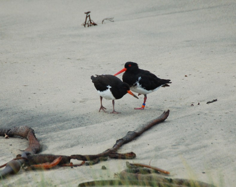 In the 1970s there were only about 50 Chatham Island oystercatchers (Haematopus chathamensis). With management there are now over 300, but they are still the world’s rarest oystercatcher.  These were on Pitt, very close to the shore plover above: