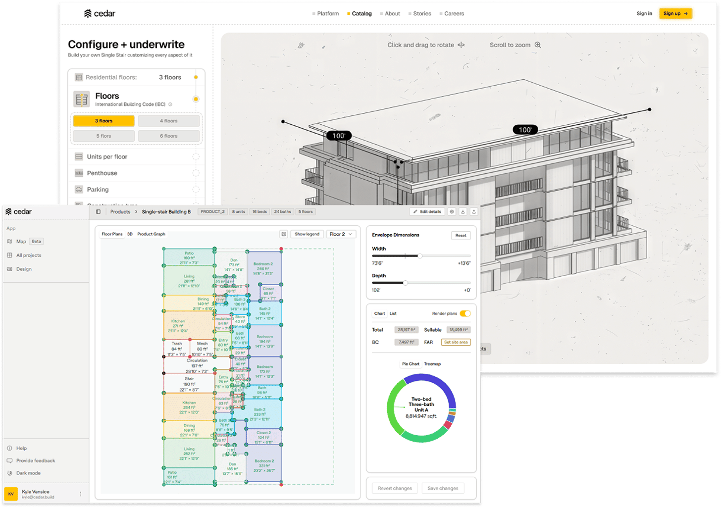 “Cedar has built a software platform that makes these processes scalable, measurable, and data-driven,” Vaidhyanathan told Archinect. “We’ve achieved permitting timelines up to 6x faster than industry norms, and we’re turning design IP into a reusable ‘product catalog,’ making great housing types repeatable while still adaptable to local conditions. This product-based model allows developers and builders to achieve the predictability, speed, and quality usually associated with manufacturing, not architecture.”