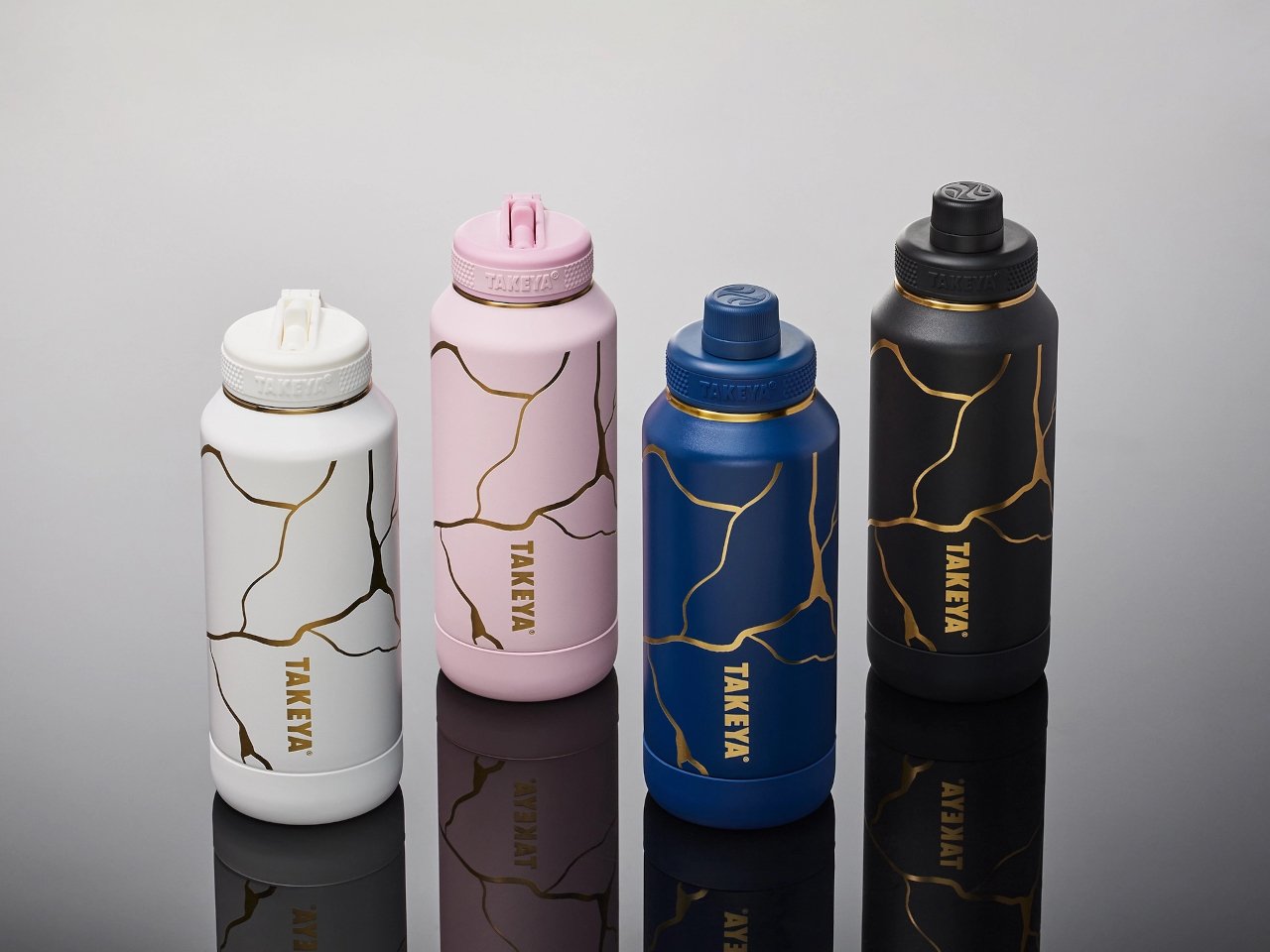 The Takeya Kintsugi Collection draws from the Japanese art of repairing broken ceramics with gold, a practice that treats fractures as features worth highlighting rather than flaws to hide. Instead of concealing damage, Kintsugi transforms cracks into golden seams that tell stories of resilience and renewal. The collection applies this philosophy to water bottles through gold-accented crackle patterns that wrap around the surface, turning each one into a small meditation on strength found through imperfection.