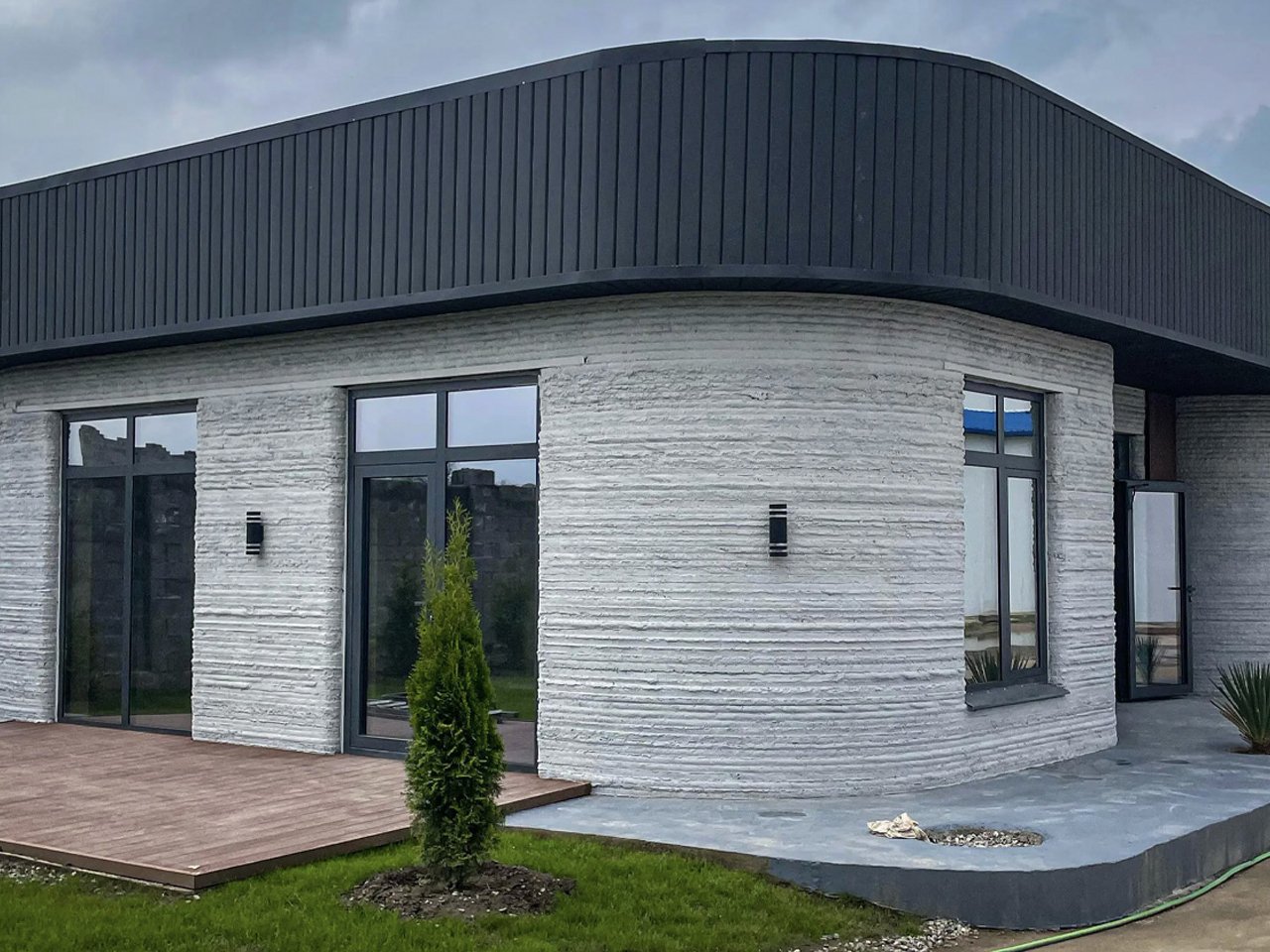 After the layered printing process, the structure was finished with doors, windows, and interiors using traditional techniques. The single-floor home spans 100 sq m, featuring a simple yet functional layout, generous glazing, and a bright living space. Completed within two months, it demonstrates the efficiency, durability, and design possibilities of modern 3D-printed construction.