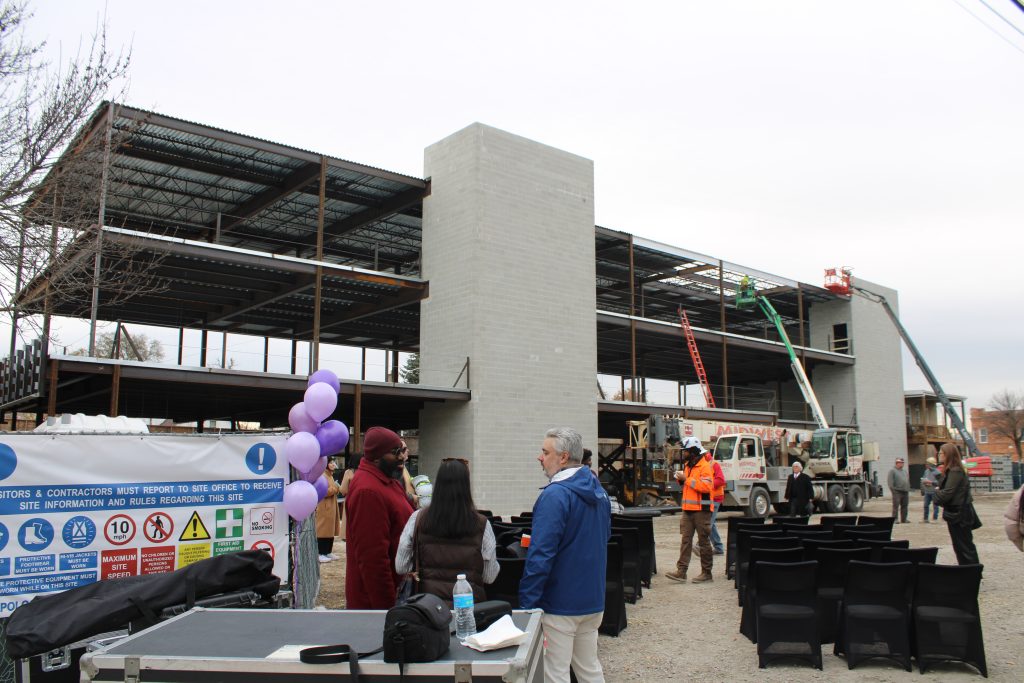 Jenkins was among the leaders and officials who gathered at the center Monday for a beam-raising ceremony.