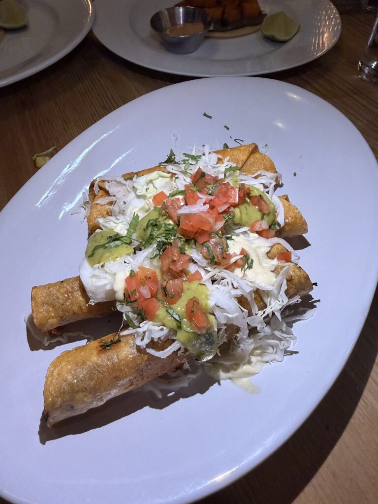 The Antojitos (starters) set an energetic tone for the menu. Highlighted options include Made to Order Guacamole served with white corn chips, Machaca Chicken Taquitos with pickled onion, cilantro, vegan cotija, and tomatillo salsa, and Latkes infused with Mexican scallion, Hatch chile crema, and guava jam. Barrio Fries add a hearty element to the early dish lineup, combining chunks of pastrami with a rich Mexican brown gravy and scallions.