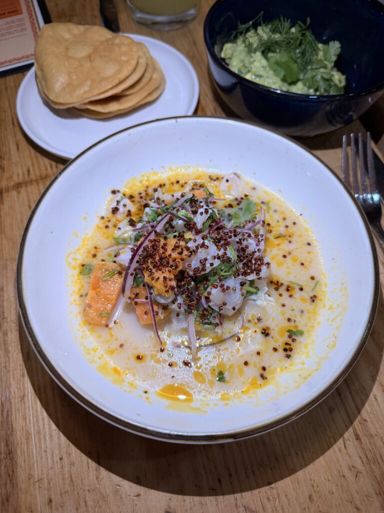 From the Raw Bar, Polanco Social incorporates freshness and acidity throughout its seafood selections. Ahi Tuna Tostada arrives topped with avocado and salsa matcha, while Hamachi Cucumber Aguachile adds a cooling contrast to the spicy undertones. Fluke Ceviche is paired with sweet potato and citrus touches, and Seared Salmon includes lime, cilantro, and jalapeño.