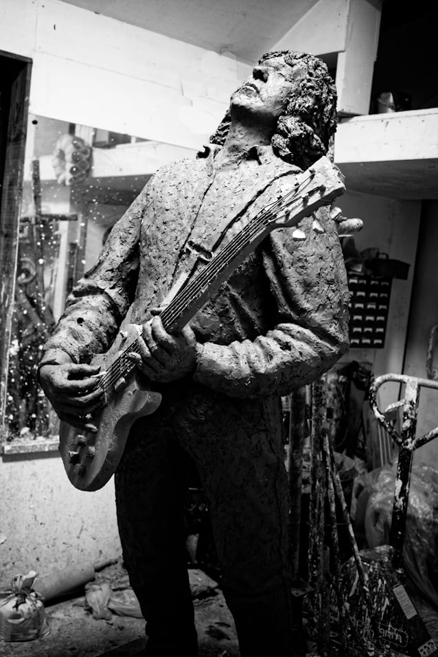 While fan support has covered the costs of the clay impression, which is now secured and ready for bronze casting, another £70,000 is needed to complete the statue plus additional costs to deliver it from the artist’s studio in Scotland and install it in Belfast. An online crowdfunding page has been launched to support the project while fans host annual Gary Moore tribute gigs as fundraisers.