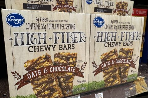 Cereal bars promoting fiber sit on a shelf at a Kroger grocery store, in Ann Arbor, Mich., Tuesday, Nov. 18, 2025. (AP Photo/Dee-Ann Durbin)(AP/Dee-Ann Durbin)