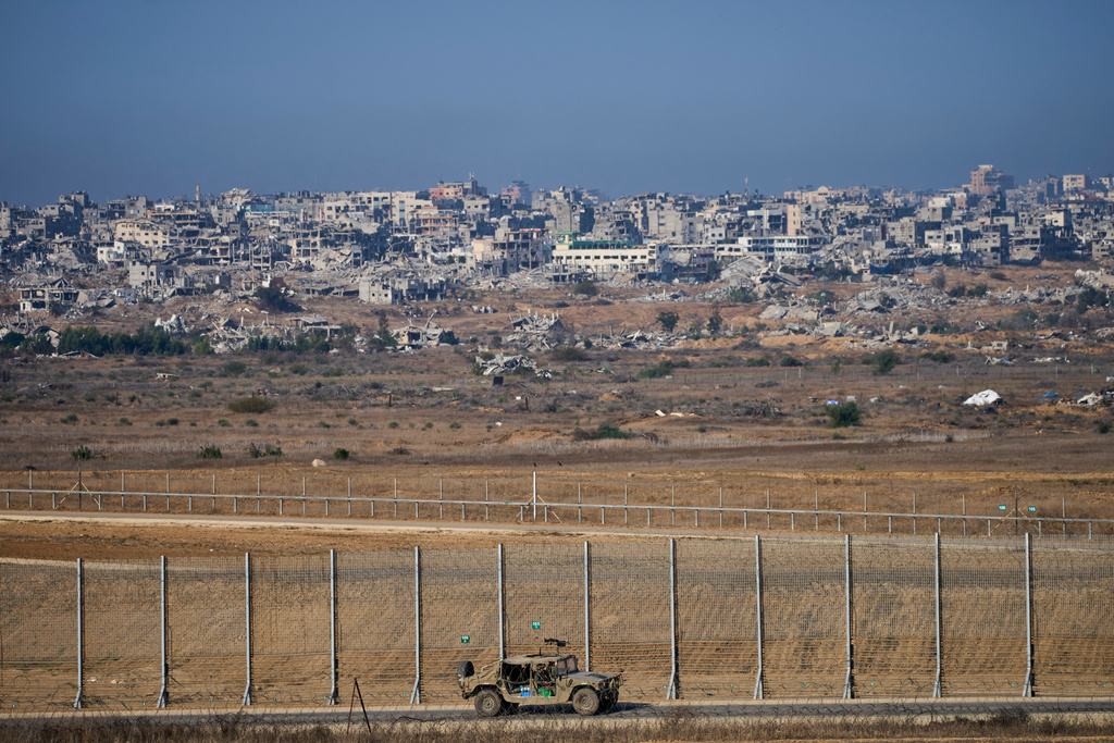 An Israeli army vehicle moves along the border of the Gaza strip, as seen from a southern Israel location on Nov 18, 2025. (PHOTO / AP)