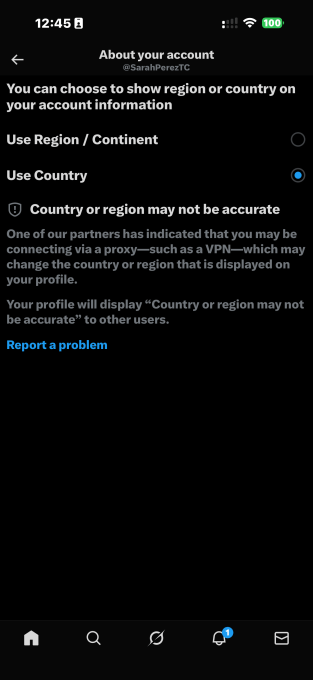 One reverse engineer digging through the app’s code (see below) also found that X appears to be working on an additional feature that would display a warning on your account if you were using a VPN to mask your location. It’s unclear if or when that feature would go live, but if it does, it would flag to others that the user’s “country or region may not be accurate.”
