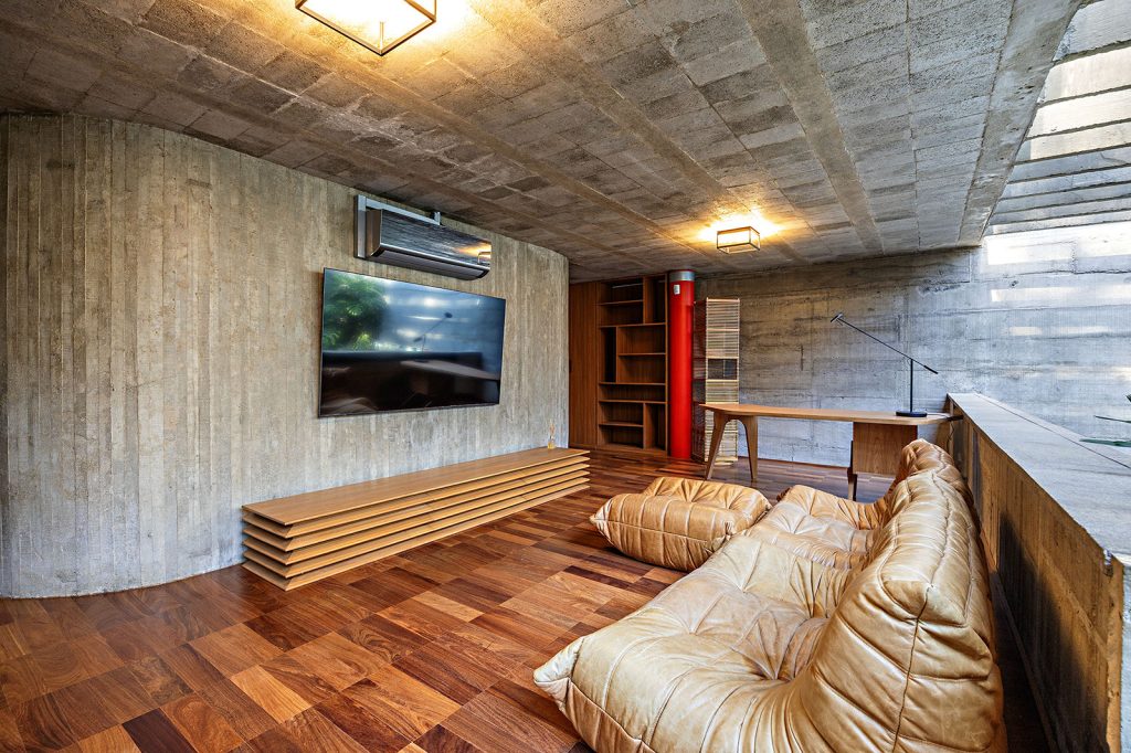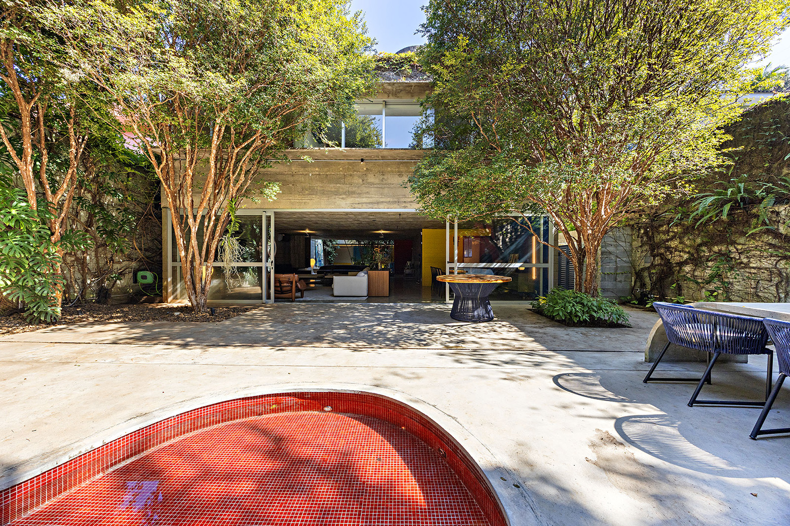 On a quiet, tree-lined street in the cultural hotbed of Alto de Pinheiros in São Paulo, this 1978 residence carries the unmistakable language of the late architect Ruy Ohtake — expressive concrete, sculptural geometry and an architectural rhythm shaped by light. Recently renovated by his son Rodrigo Ohtake (both are descendants of artist Tomie Ohtake), the home has an intact brutalist core and refined relationship to the landscape.