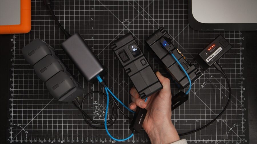 Using a USB-C to D-TAP adapter, it’s possible to charge all of our batteries (camera or otherwise) using a 300W USB-C power supply. Image credit: Team2Films