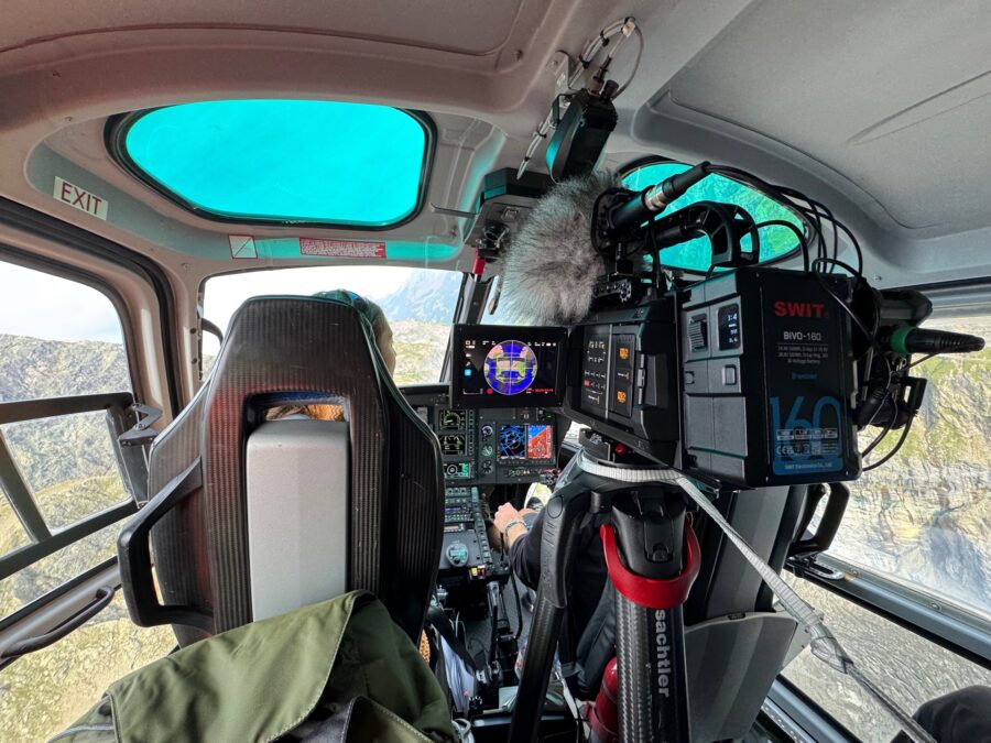 Our equipment …… was spread across three people. LowePro Camera Boxes made organisation easy. Image credits: Team2FilmsHelicopter Flight