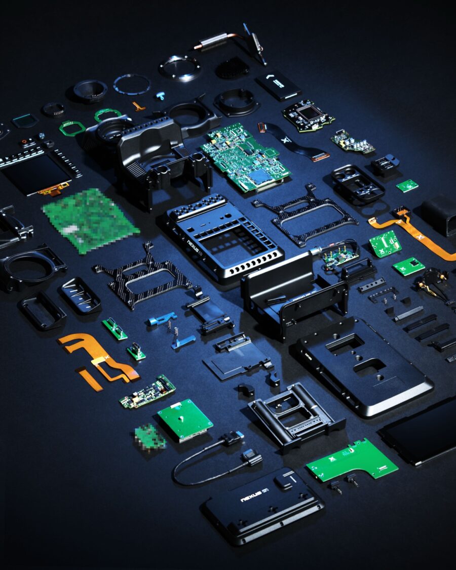 Flat lay photo of the Nexus disassembled. Image credit: Nexus CameraFull frame module and gimbal compatibility