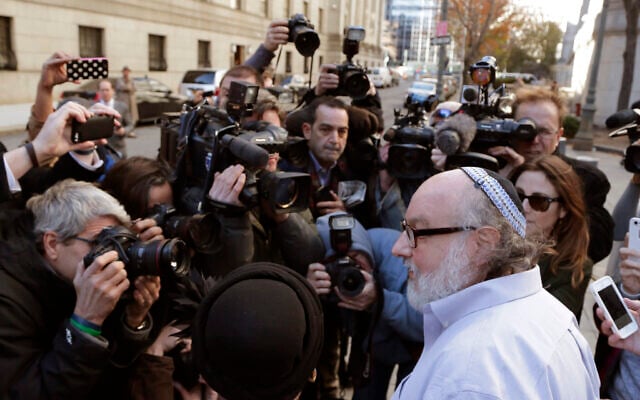 Convicted spy Jonathan Pollard leaves the federal courthouse in New York, November 20, 2015. (AP/Mark Lennihan)