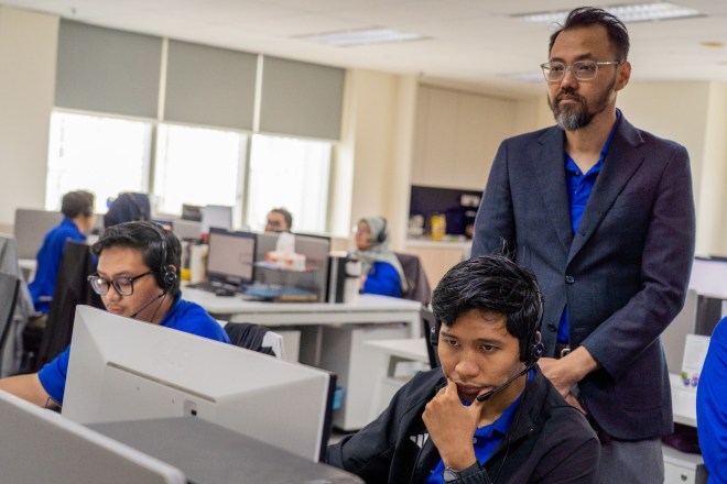 Prior to issuing a guarantee letter, a PMCare call centre agent utilises the company’s rule-based engine to verify the request against parameter sets derived from the client’s policy or schedule of benefits. Photo by Saw Siow Feng for CodeBlue.