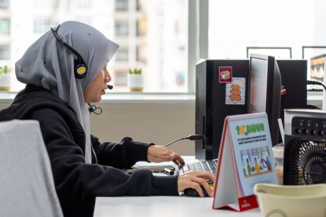 A PMCare call centre agent responds to member queries. Photo by Saw Siow Feng for CodeBlue.