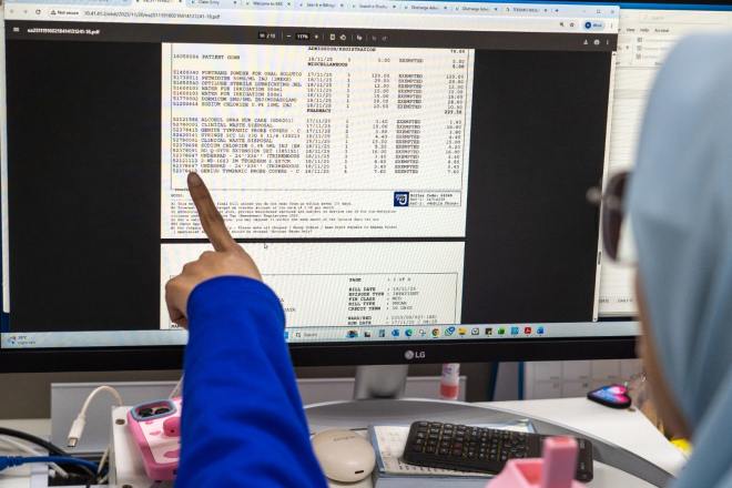 Final GL team members at PMCare assess and adjudicate invoices received from hospitals before issuing the final GLs. Photo by Saw Siow Feng for CodeBlue.