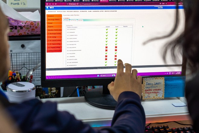 A Final GL team member at PMCare performs claims verification using claims data received via API, preceding the claims adjudication based on the schedule of benefits or policy. Photo by Saw Siow Feng for CodeBlue.