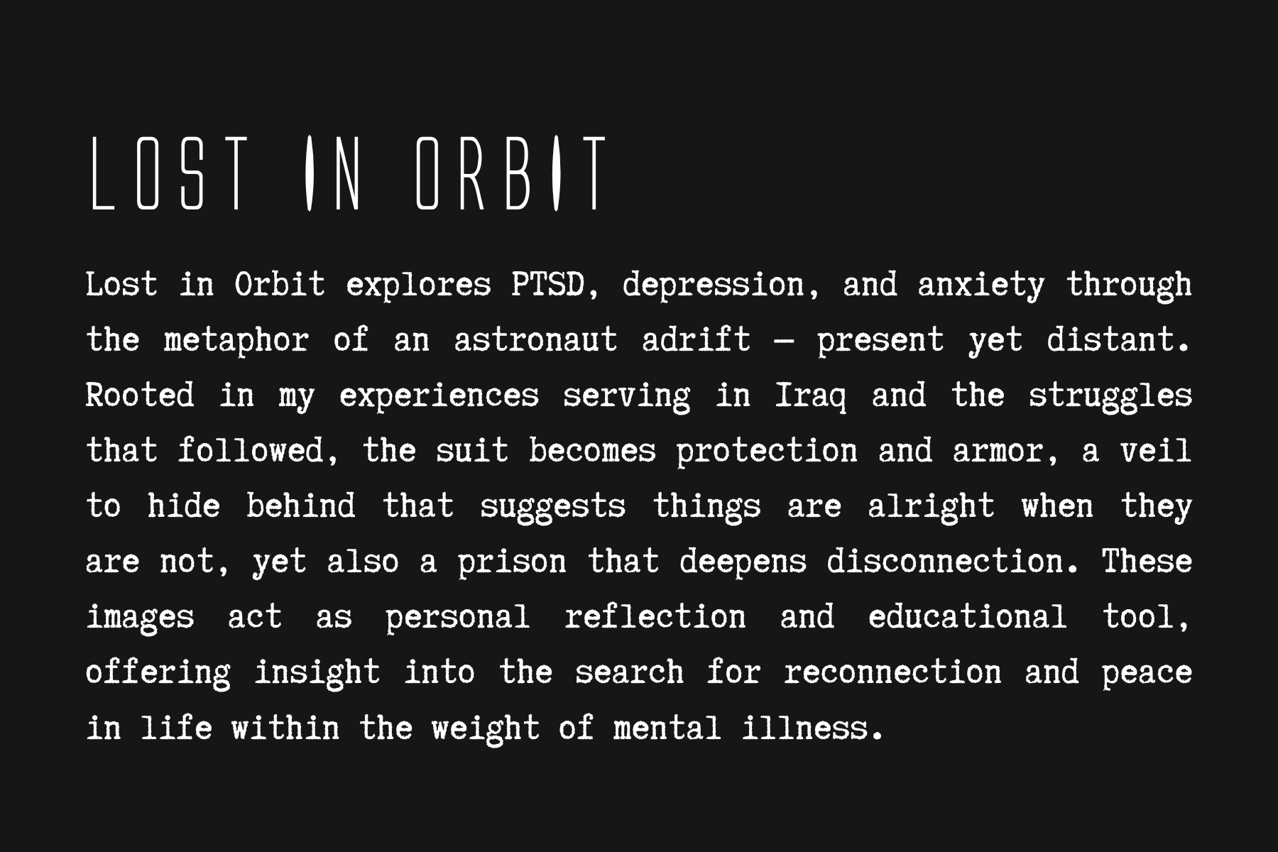 One thing that helped me at the beginning of my project, Lost in Orbit, was a brief yet concise statement about the project. I would start early on coming up with a statement, as it will help. If, during the process, you begin to feel lost, it can put you back on track. Below is the statement for Lost in Orbit. Throughout the article, you have seen images from the project and behind-the-scenes content to give a glimpse into this massive year-long project.