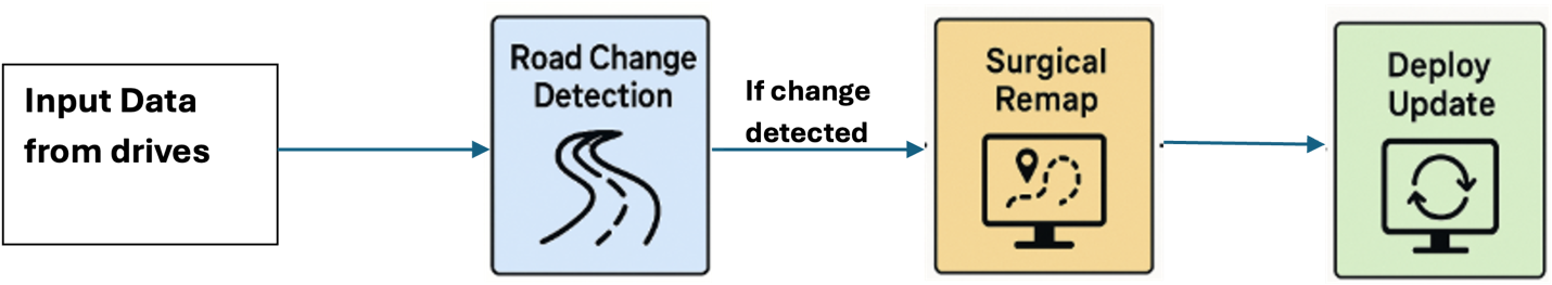 For human drivers, changes in the road may be inconvenient, but they are usually manageable. But for autonomous vehicles, such changes can pose significant challenges if not properly accounted for. The possibility of road changes requires that the AV systems be programmed with sufficient redundancy and adaptability. It also requires appropriate mechanisms for modifying and deploying corrected REM™ maps as quickly as possible. The diagram below captures the change detection subsystem in REM™ that is responsible for identifying changes in the map and, in the case a change is detected, deploying a map update.