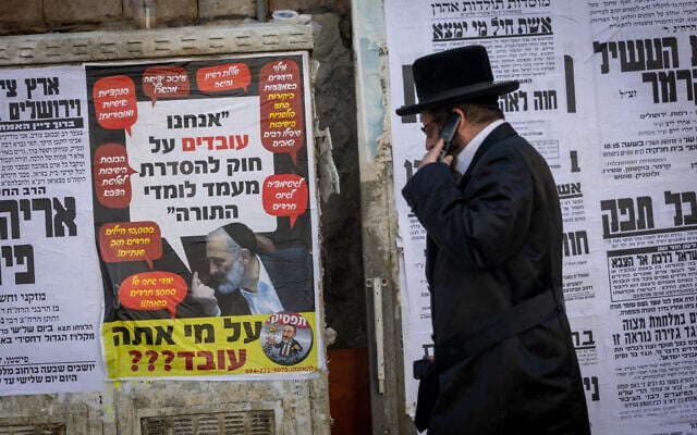 “It’s a legislation that basically pretends to be about the draft,” he told The Times of Israel days earlier. “But as you hear the Knesset members saying themselves, this is not draft legislation. This is the legislation for [preserving the] status of the Yeshiva boys,” he said.
