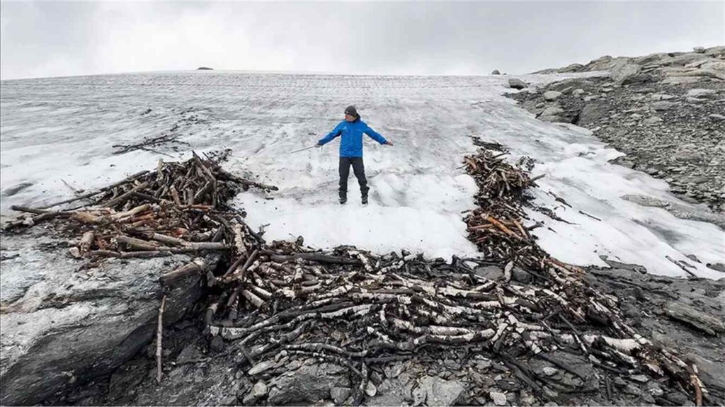 Consisting of two parallel fences made of many cut wooden logs, their appearance above an ice sheet startled a local hiker named Helge Titland as he was trekking on the Aurlandsfjellet Plateau high in the mountains of Norway’s Vestland County in 2024.