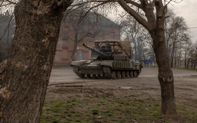 A Ukrainian tank drives on a road in a village in the Dnipropetrovsk region, on March 16, 2025, amid the Russian invasion of Ukraine. (Roman PILIPEY / AFP)