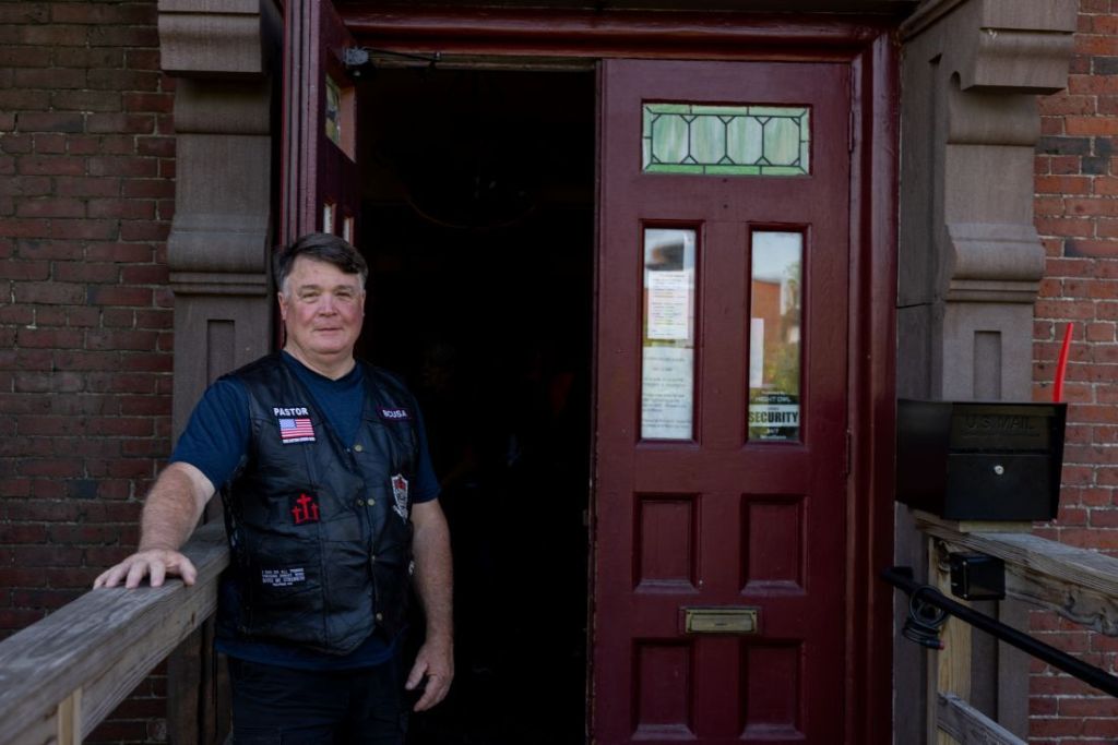 Leon Licata, pastor at the Union Street Brick Church in Bangor, said older adults make up a small portion of the people they serve at the church’s warming and cooling center, but he has seen that number increase in recent years. (Katherine Emery/The Maine Monitor)