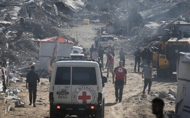 Teams from the Red Cross and Hamas’s military wing searched for the remains of an Israeli hostage in northern Gaza’s Jabalia refugee camp, Arabic media, including the Hamas-affiliated Quds News Network, reported.