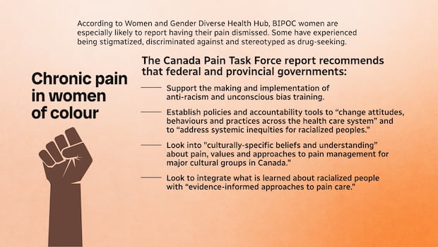 Canadian chronic pain physicians and advocates say women are less likely to be believed when they don’t show visible signs of pain. Women of colour report facing even more discrimination and barriers to health care support.