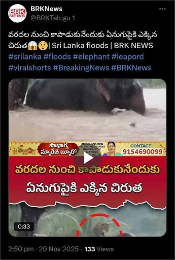 False and misleading information is widely shared on social media regarding the current disaster situation in Sri Lanka. Recently, a video and images purporting to show a leopard slowly treading on an elephant’s back during a flood have gone viral.