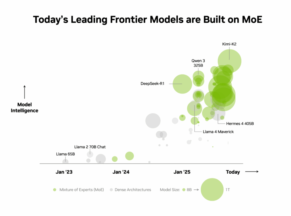 Since early 2025, nearly all leading frontier models use MoE designs.