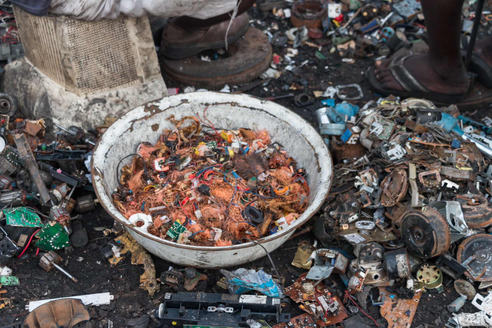 The end of life for much of the Global North’s consumer e-waste will be a dump or landfill somewhere in Africa, Asia or Latin America. Seen here is a collection of urban dump-mined copper in Ghana. Image courtesy of Fairphone.