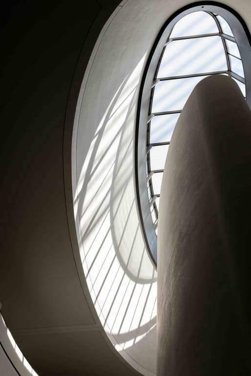 The design of the scheme addresses both the desert climate and local cultural traditions. Five lightweight steel “wings” form part of a natural ventilation system that draws hot air out of the central atrium. The design uses negative pressure at the tower tops to release warm air, while cooler air circulates from pipes buried beneath the desert floor. Each wing is glazed to bring controlled daylight into the galleries, with individual tuning possible across the system.