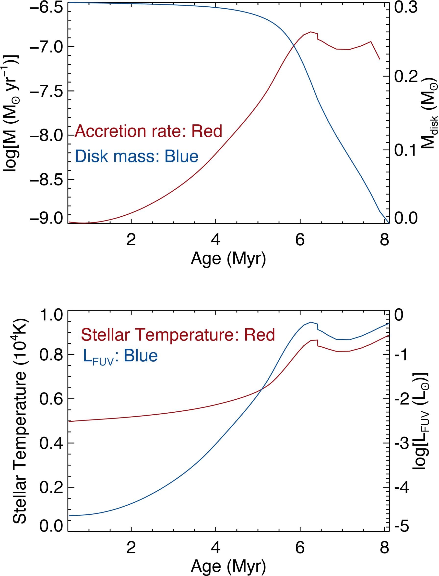 But this presents another problem: the older stars are accreting mass much more rapidly than their younger counterparts. Theory predicts that this can’t be true; basically, it doesn’t make sense. Why would a star accrete less mass when there’s more available, and more mass when there’s less available?