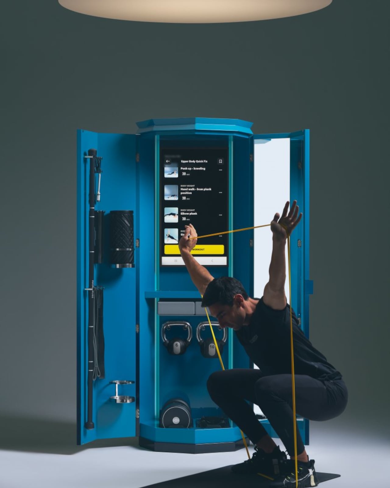 Ottagono by architect Giulia Foscari for Cassina Custom Interiors offers a different answer. It looks like a tall octagonal column, occupies less than one square meter, and hides a complete Technogym-powered workout behind faceted doors. Designed in collaboration with Technogym, it debuted during Milan Design Week and will be installed at Hotel du Cap Eden Roc in Antibes, positioning it squarely in the luxury hospitality world where space costs money and objects need to earn their floor area.