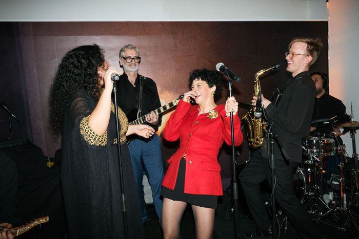 Shawkat gave a jovial “Speech! Speech!” when Gates appeared on the mezzanine above the crowd, Evita-style, to thank everyone for attending and to introduce “the great” Zahra Alzubaidi, a musician who works in a variety of Arabic styles and happens to co-star in the film. After everyone rushed the stage for Alzubaidi’s performance, DJ Fursa took over the rest of the night’s music. Succession’s Arian Moayed also stopped by to enjoy the celebration.