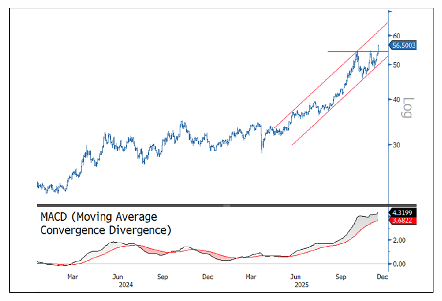 Meanwhile, uncertainties surrounding tariffs have triggered arbitrage flows into New York, which raised the odds of a localized squeeze such as that seen in London. Silver’s recent addition to the USGS critical minerals list has heightened concerns about future tariffs and raised worries that US silver inventories will not be available to balance prices.