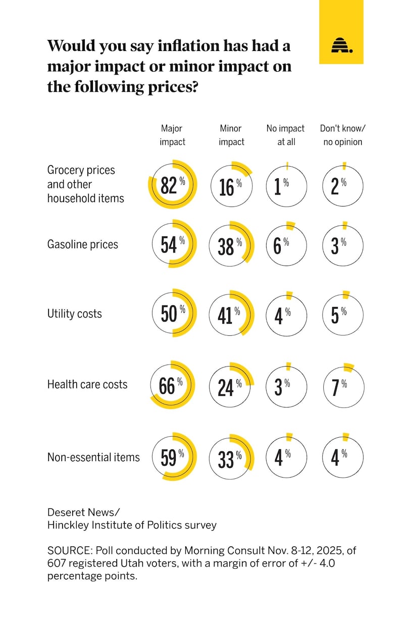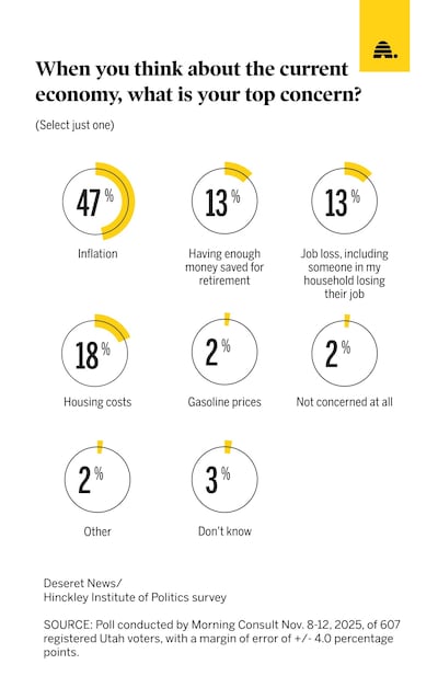 The K-shaped economy describes a growing divide between higher and lower wage earners.A red hot investment markets, driven by AI development, has widened the K-shaped divide.Americans and Utahns identified inflation as their top concern in a new poll.