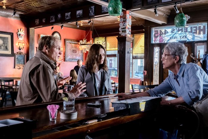 There are many aspects of Ella McCay that are meant to read as lighthearted and wacky and instead feel alien, though few reach those same entrancing levels of off. There is, for instance, the fact that the film performs awkward verbal contortions to inexplicably keep the state in which it takes place, which is clearly in New England (it was shot in Rhode Island), unnamed. Or the scene in which, once Ella ascends to the governorship after her boss is appointed secretary of the Interior, her handsome wastrel of a husband, Ryan (Jack Lowden), demands to be declared unofficial co-governor, a heel turn so cartoonish the film inadvertently hints that he’s been planning it since they started dating in high school. Then there’s the way that Ella’s supposedly loving, no-nonsense aunt, Helen (Jamie Lee Curtis), ambushes her niece with a surprise reunion with the philandering father she hasn’t seen in years, and the reveal that that father, Eddie (Woody Harrelson), is only attempting to patch things up with his kids because the woman he’s been dating, who’s only ever glimpsed in passing, is threatening to leave him otherwise.