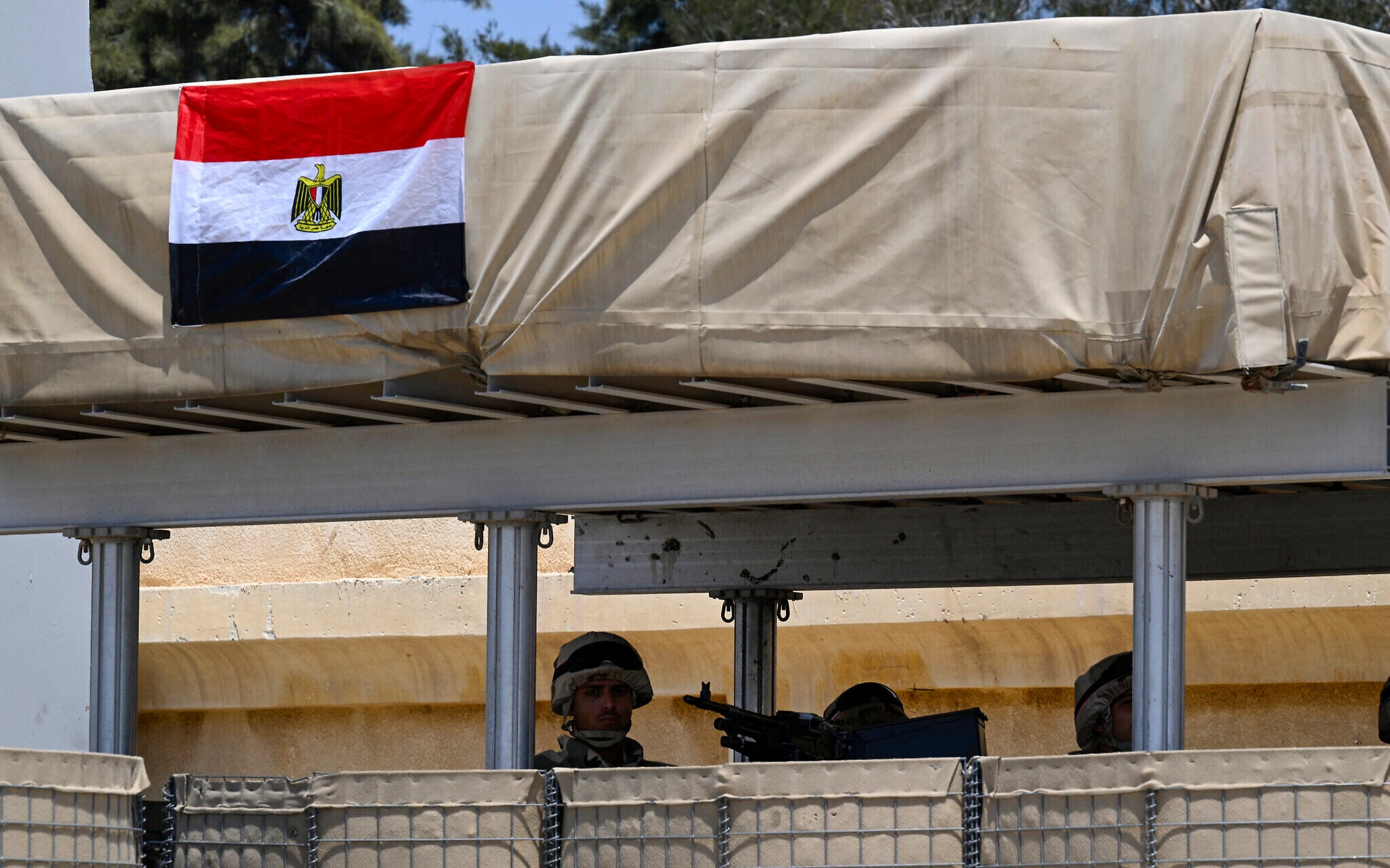 Soldiers at a post on the Egyptian side of the Rafah border crossing with Gaza in Rafah on August 18, 2025 (Khaled DESOUKI / AFP)