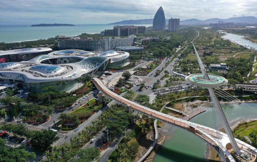 An aerial drone photo taken on Nov. 30, 2025 shows a duty-free shopping mall in Sanya, south China’s Hainan Province. (Xinhua/Guo Cheng)