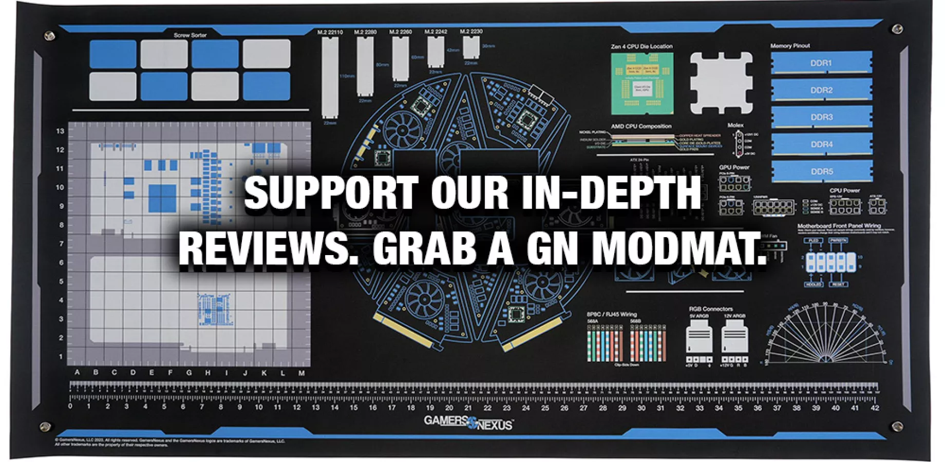 Grab a GN15 Large Anti-Static Modmat to celebrate our 15th Anniversary and for a high-quality PC building work surface. The Modmat features useful PC building diagrams and is anti-static conductive. Purchases directly fund our work! (or consider a direct donation or a Patreon contribution!)