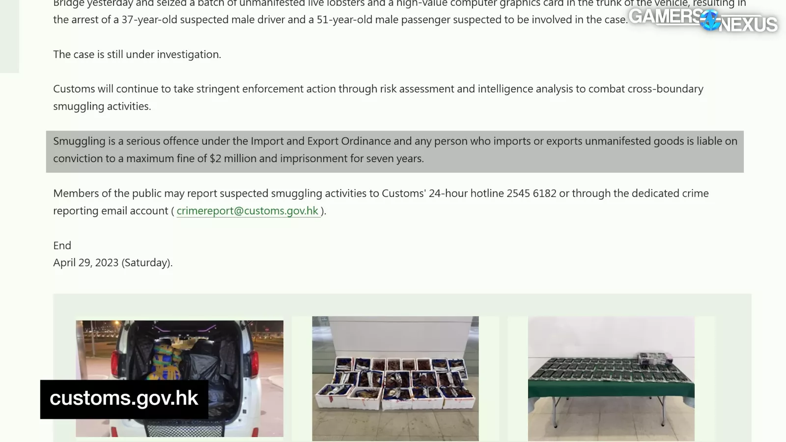 Then we talked to a lawyer about the previous sentence, then investigated whether or not GPUs are actually smuggled with lobsters into Hong Kong.
