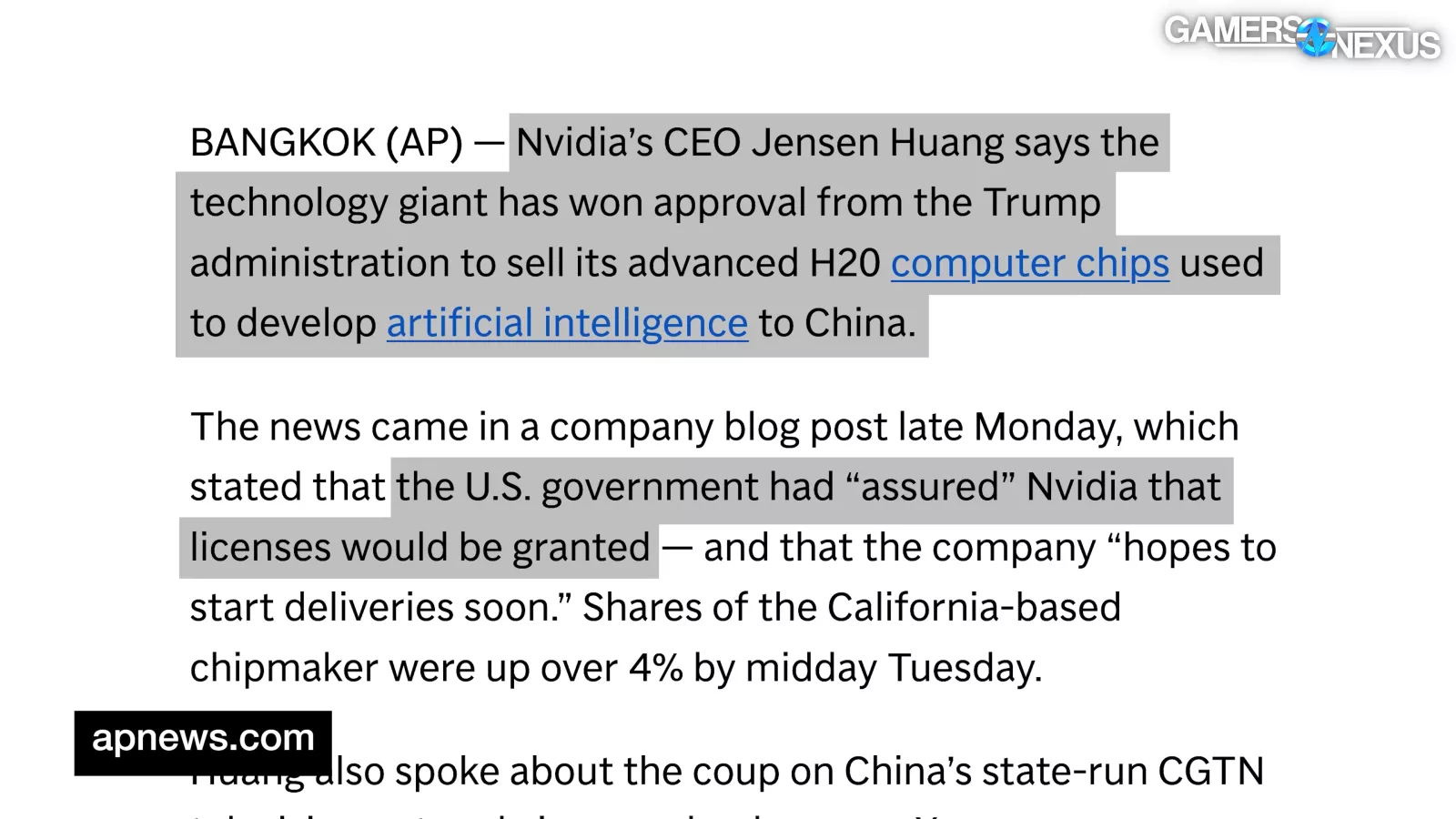 It’s also illegal for anybody in the United States, citizen or not, to sell these GPUs to China, Hong Kong, Macau, or companies in those locations if the seller does not have a re-export license.