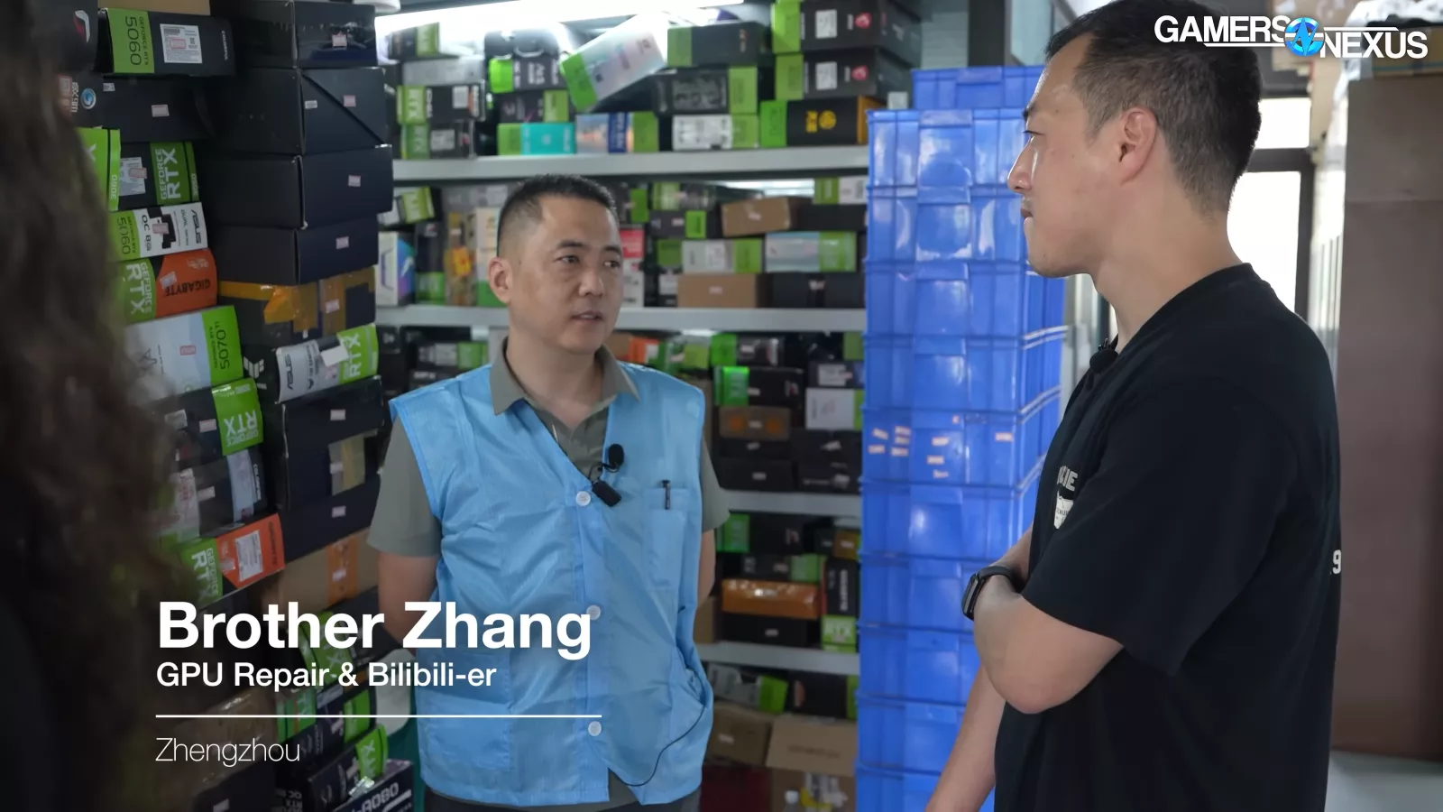 Brother Zhang, a renowned Bilibili uploader (basically a YouTuber in China) who runs a video card repair shop in Zhengzhou. In addition to repairs, he regularly gets large orders from customers asking him to build them custom, unofficial, higher VRAM capacity NVIDIA GPUs for large language model tasks. Brother Zhang is not a direct part of any “black market,” as, again, his business operates legitimately within China as a repair shop. It does, however, come into contact with GPUs the USA considers to be “illegal” for sale into China.