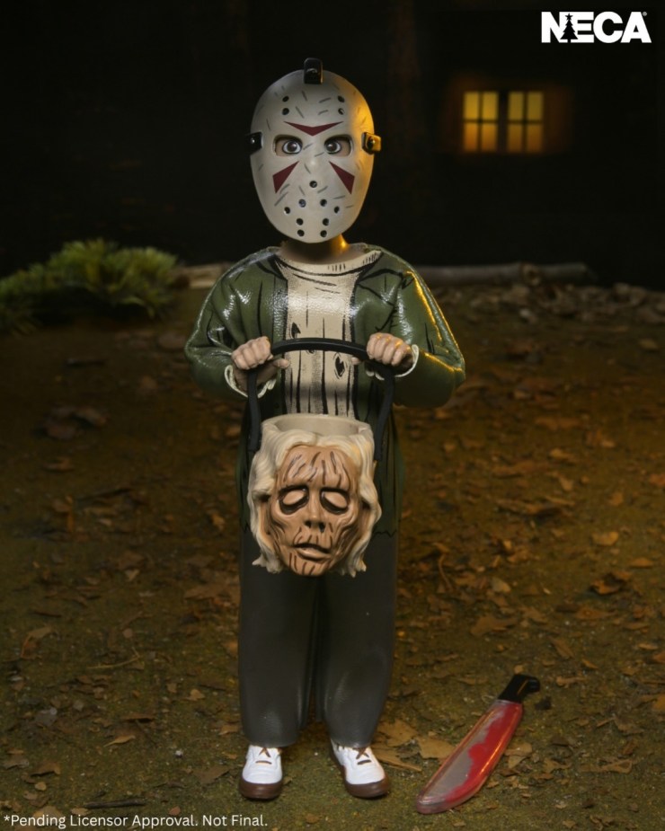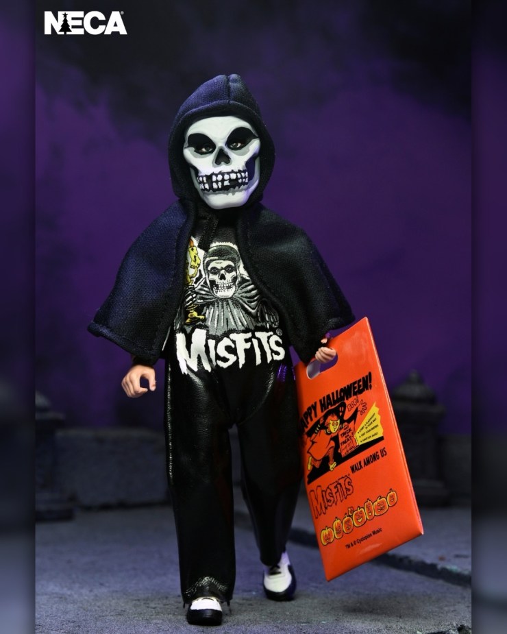 Each 6-inch action figure wears a mask and soft goods clothing replicating the signature vinyl look of the classic costumes and includes a trick-or-treat bucket or bag accessory.