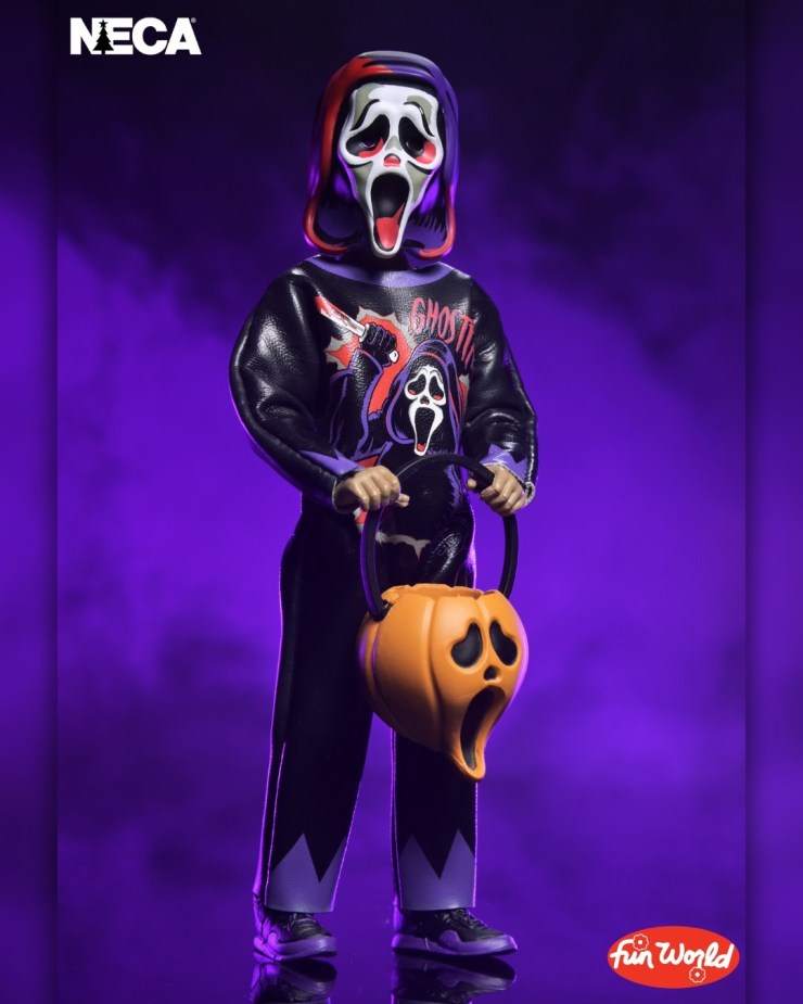 “This wave features NECA’s original designs in the style of those costumes as if they were produced today, reimagining the horror icons Ghost Face, Jason, Chucky (Child’s Play 2), Tiffany (Bride of Chucky), and The Fiend (Misfits).”