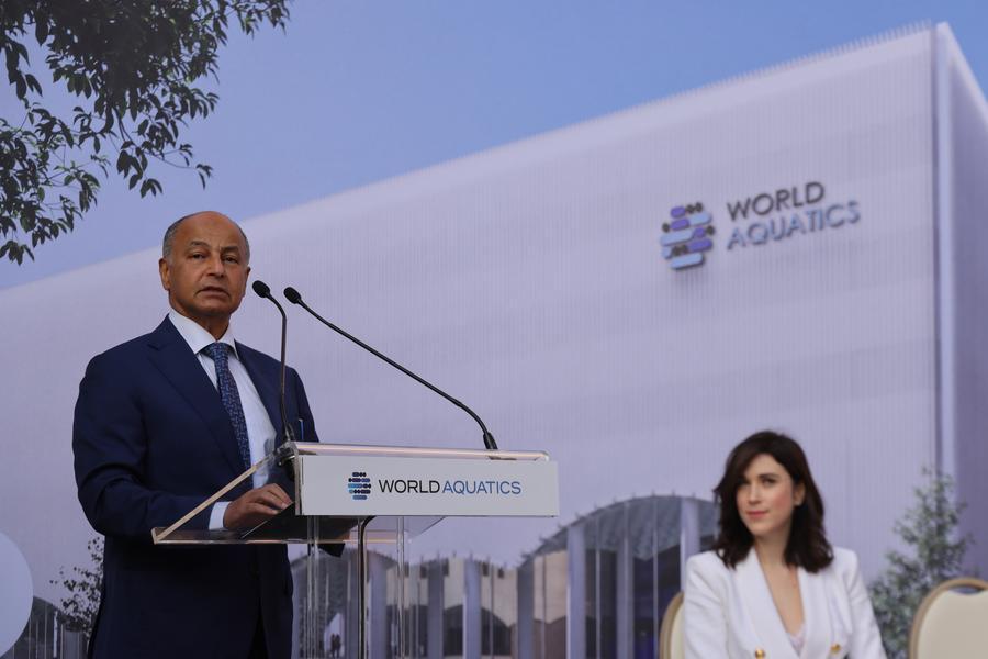 World Aquatics president Husain Al-Musallam speaks during the groundbreaking ceremony of the organization’s new global headquarters in Budapest, Hungary on Oct. 7, 2025. (Photo by Attila Volgyi/Xinhua)
