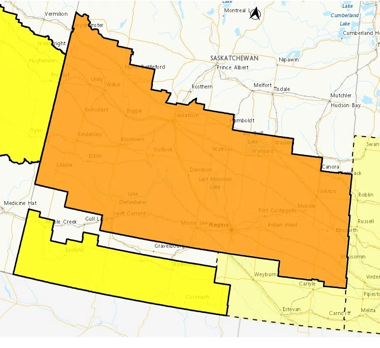 “There is also a risk of freezing rain throughout the day on Wednesday, extending from Leader and Kindersley, southeast towards Swift Current, Moose Jaw, Regina, Estevan and Broadview.”