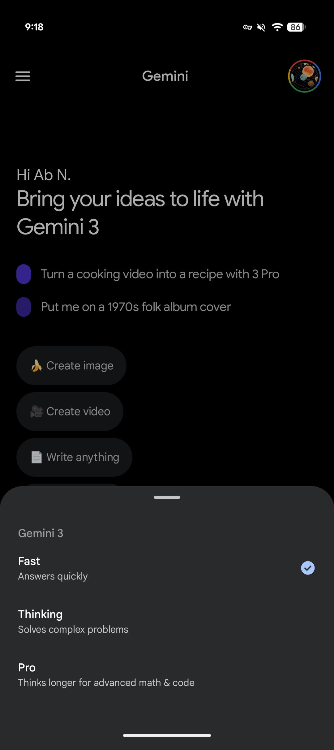 Since the launch of 3 Pro in November, Gemini’s model picker has offered: Fast – “Answers quickly” and Thinking with 3 Pro – “Thinks through complex topics.”