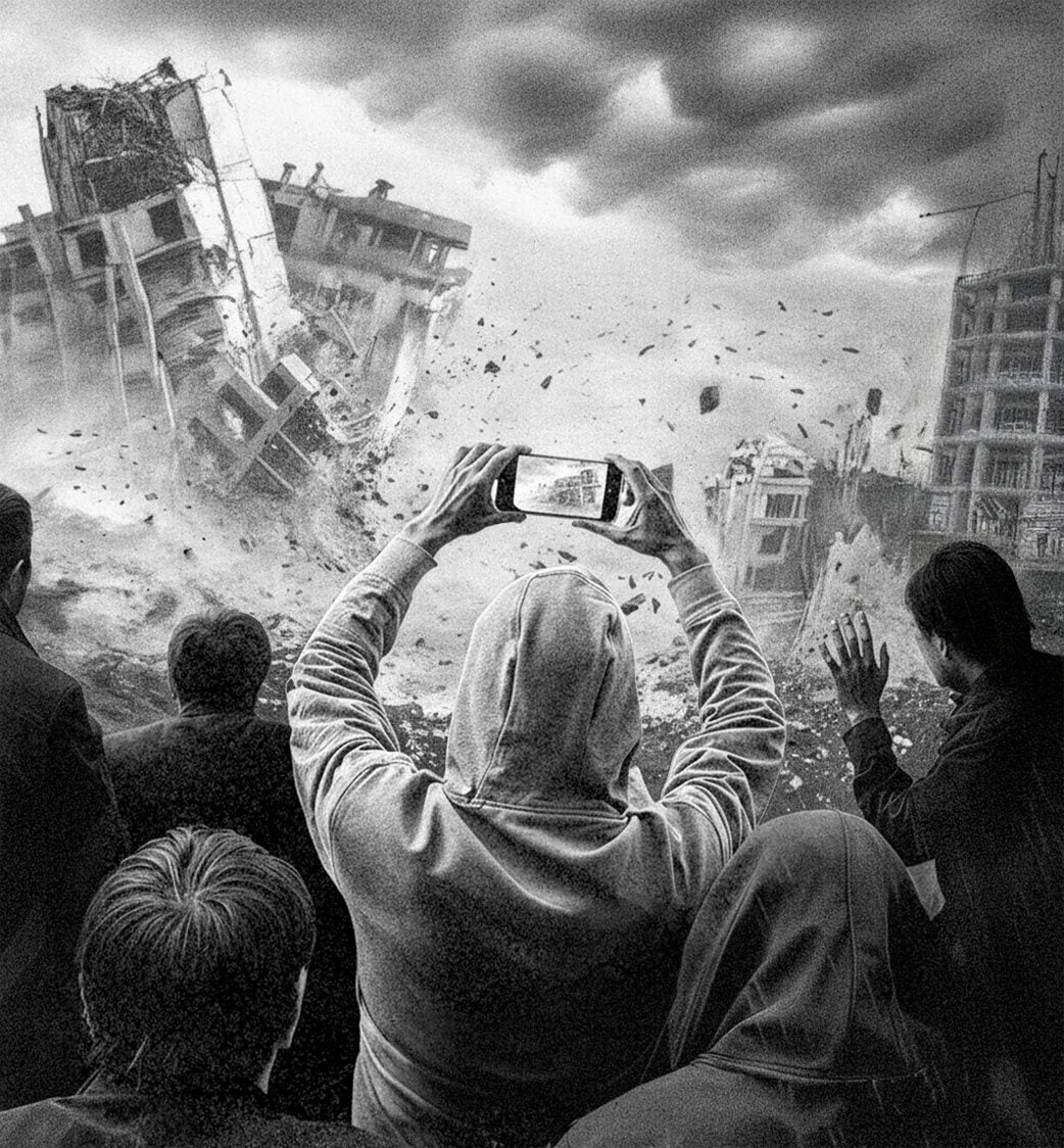 Netanyahu’s efforts to bolster his message and lure defectors back to the pro-Israel cause extend beyond Bible study. In September, following a defiant address to a near-empty U.N. General Assembly chamber in New York City, he met with a group of social-media influencers at the Israeli Consulate to discuss what could be done to counter what he derided as the “Woke Reich.” “We’re going to have to use the tools of battle . . . and the most important ones are on social media,” he said. Luckily, in his view, one of the most important tools—“TikTok, number one”—was within his grasp. The platform, so influential in conveying images of suffering in Gaza to the young people I had met in Bloomington, was being wrested from Chinese control and could soon pass into the safer hands of pro-Israel oligarchs, including Larry Ellison (the largest individual donor to Friends of the IDF), Marc Andreessen, and Ben Horowitz, son of the late David Horowitz. “I hope [the sale] goes through, because it will be consequential,” said Netanyahu, who also urged his audience to “talk to Elon,” controller of that other “most important” tool, X.
